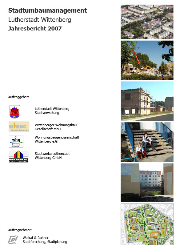 In der Lutherstadt Wittenberg sind Wallraf & Partner seit 2003 mit dem Stadtumbaumanagement beauftragt. Das Aufgabenspektrum beinhaltet die Umsetzung der städtebaulichen Rahmenplanungen für die Stadtumbaugebiete, die Koordinierung der Gebäudeabrisse nach den städtebaulichen Leitbildern sowie in der Abfolge nach den Maßgaben der wohnungswirtschaftlichen und versorgungstechnischen Effizienz, die Abstimmung der Fördermittelanträge in Stadtumbau Ost, die Projektsteuerung für die Bebauungsplanung und Erschließung der Abrissflächen für Neubau und Grünraumgestaltung, die Aktualisierung der Umbaukonzepte sowie die Öffentlichkeitsarbeit.